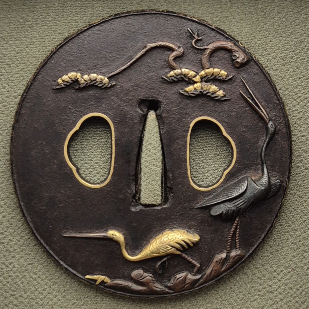 Over the years, Alexander has assembled a small but carefully selected collection that spans several periods and schools. Many of the pieces date from the Koto and early Edo periods, reflecting a time when sword fittings balanced functionality with increasingly sophisticated artistic expression.
